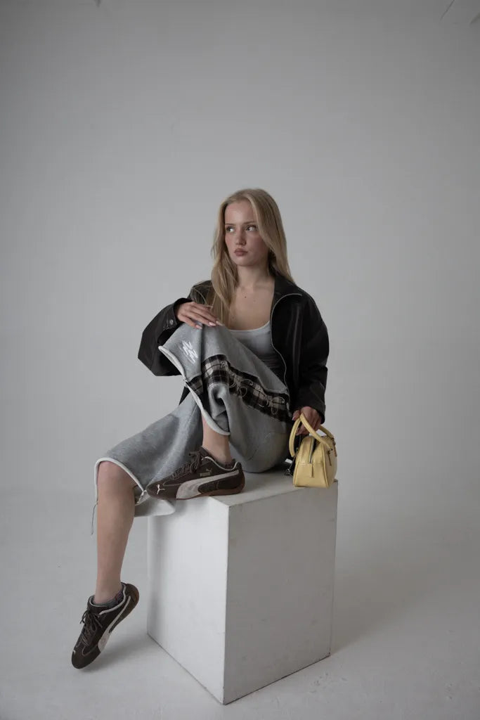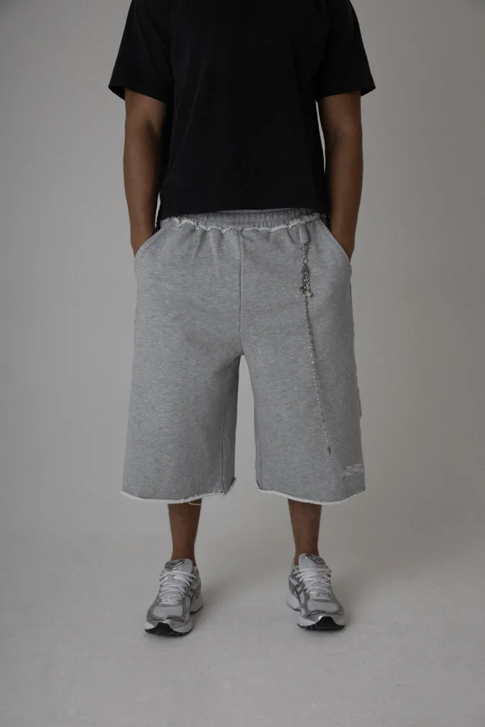 long-form utility cut with detail. made from 100% french terry cotton at 480gsm, dense, breathable, preshrunk for shape. baggy and relaxed, designed to fall below the knee, just above the shin.